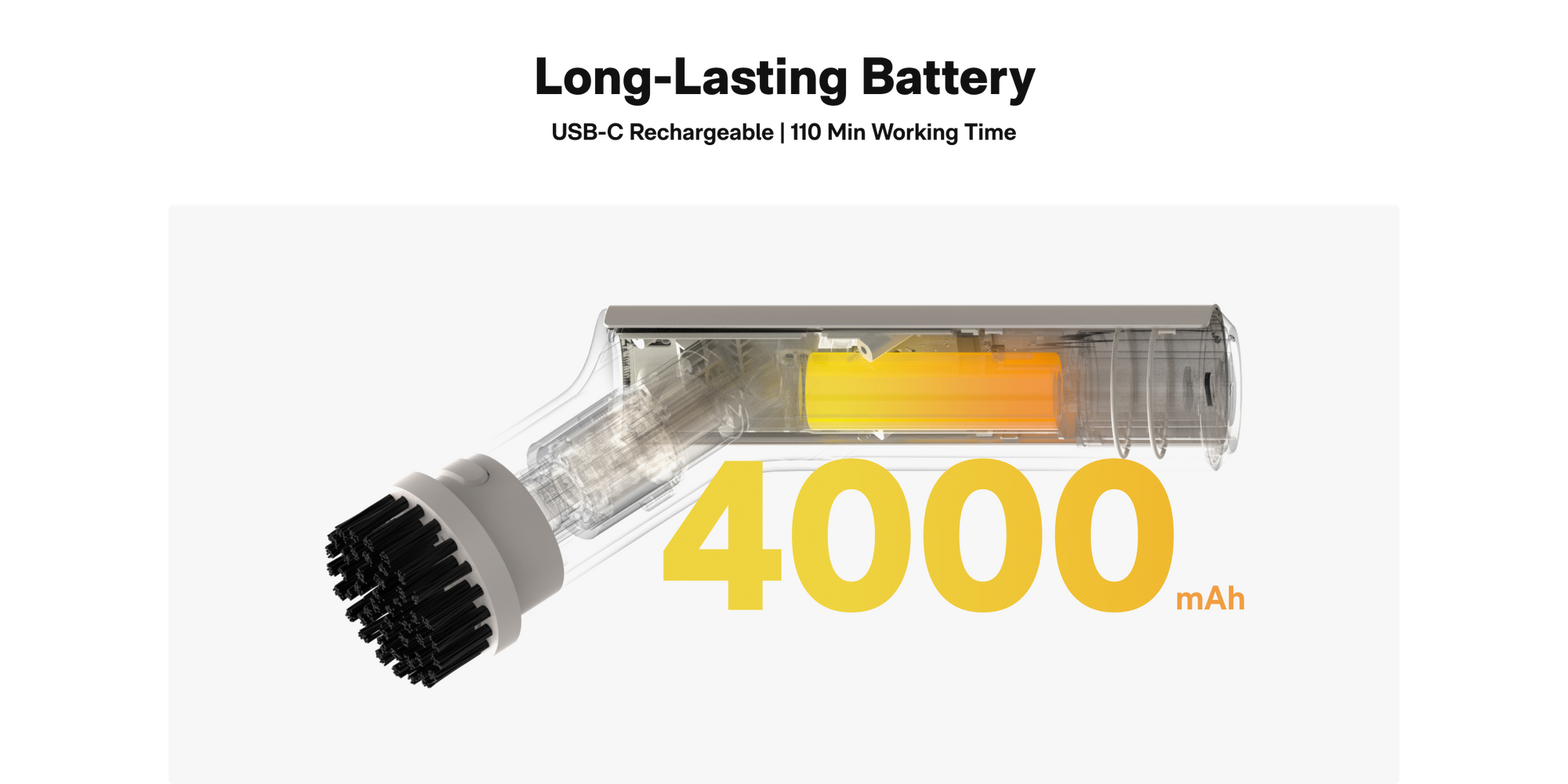 - 4000mAh Rechargeable Battery – Long-lasting power for extended cleaning sessions