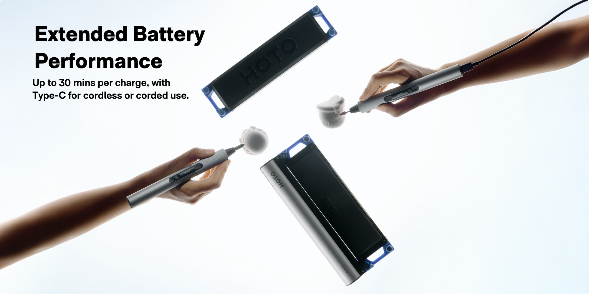 • Extended Battery Performance: Delivers up to 30 minutes of cordless operation with built-in safety pauses on a single charge.